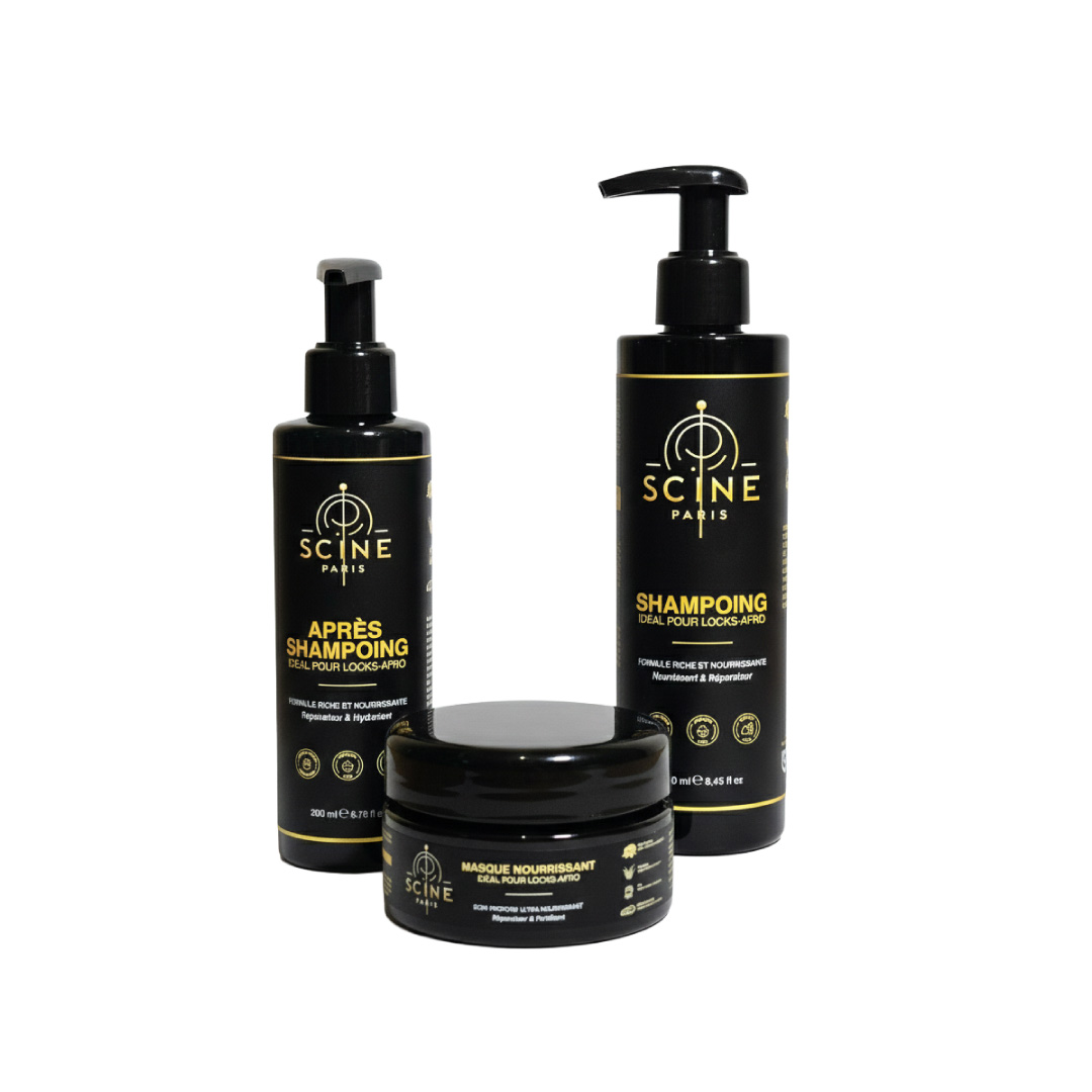 Ce pack réunit le shampooing, l’après-shampooing et le masque nourrissant pour offrir une routine complète, pensée pour respecter la texture, renforcer la fibre et sublimer durablement les cheveux locks et afro.